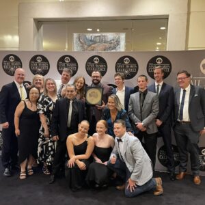 The Nationals Member for Gippsland South, Danny O’Brien with Ben and Elyse Fisher and staff from The Middle Pub Korumburra as they celebrate their multiple wins including Regional Hotel of the Year.