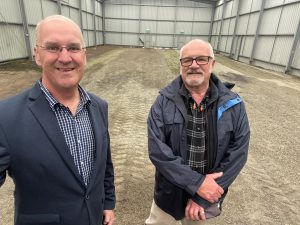 The Nationals Member for Gippsland South, Danny O’Brien with John Davies, President of the Korumburra Men’s Shed, inside the large goods shed that the Men’s Shed will soon be moving into.